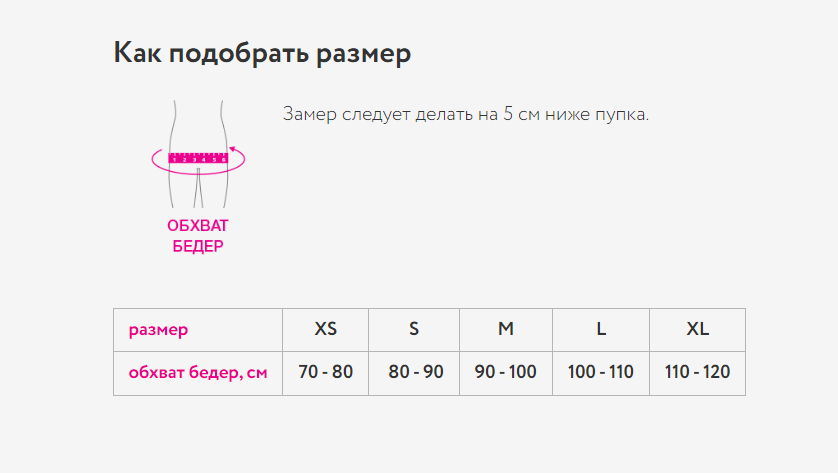 Таблица подбора размера: