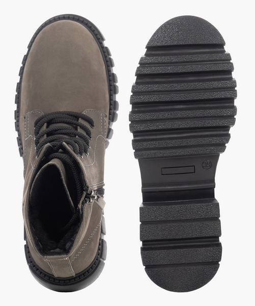 Эти ботинки практичны для сурового зимнего сезона и имеют актуальный брутальный дизайн. Конструкция обуви с верхом из натурального нубука защищает ноги от мороза снаружи, а внутренняя шерстяная подкладка сохраняет тепло. Вкладная ортопедическая стелька мягко поддерживает своды и разгружает стопы при ходьбе. Фронтальная часть ботинок оснащена прочной шнуровкой и молнией с боку для ускорения надевания. Формоустойчивый задник фиксирует задний отдел стопы и останавливает заваливание. Высокая тракторная подошва отлично защит от холода и сделает каждый шаг энергичным и устойчивым. Внешний вид модели придаст вашему облику дерзости и решительности. Наденьте эти ботинки и вот, вы готовы к приключениям!