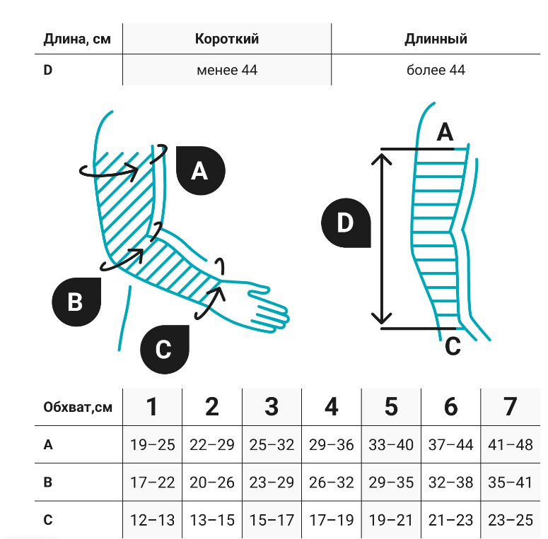• Рукав может использоваться совместно с компрессионной перчаткой