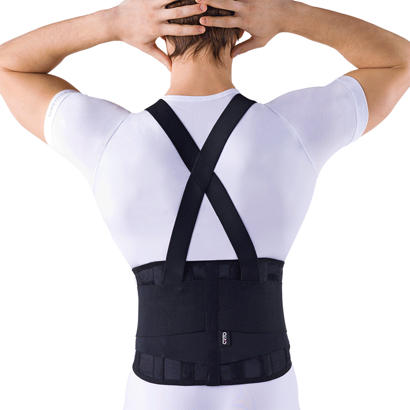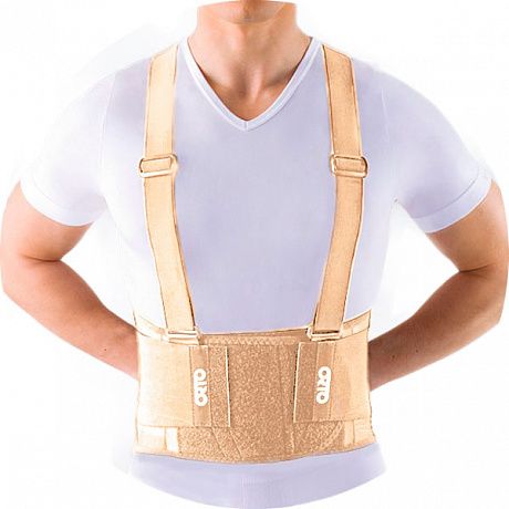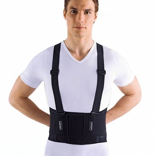 Ортез на поясничный отдел позвоночника ORTO ПК 220 из сетчатой ткани, с гибкими ребрами жесткости и парой двойных эластичных ремней. В комплект входят съемные подтяжки, регулируемые по высоте.