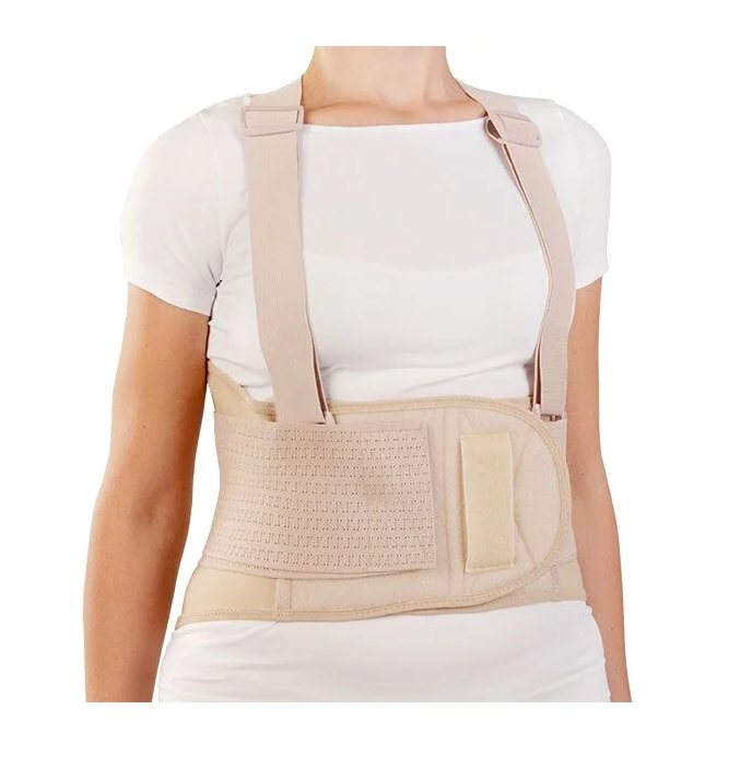 Дополнительные упругие ребра в передней части корсета предотвращают его скручивание при наклонах и в положении сидя. Петля для пальцев руки спереди корсета облегчает его надевание.